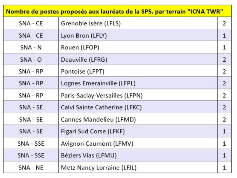 Pour rappel, les postes ouverts aux lauréats de la SPS dans les terrains ICNA TWR en 2026 :
